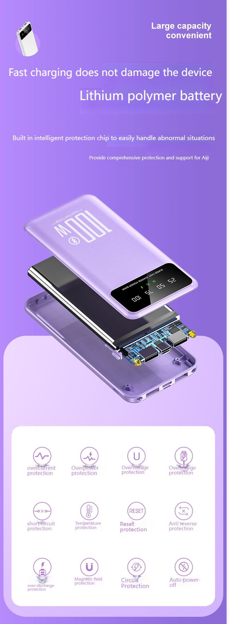 Supports full charging protocols including PD, QC, SCP, FCP, and others — ensuring high-speed charging for smartphones, tablets, and laptops.
