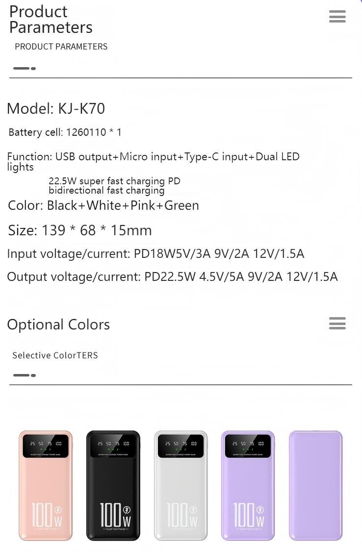 Output: Dual USB + PD22.5W (4.5V/5A, 9V/2A, 12V/1.5A)