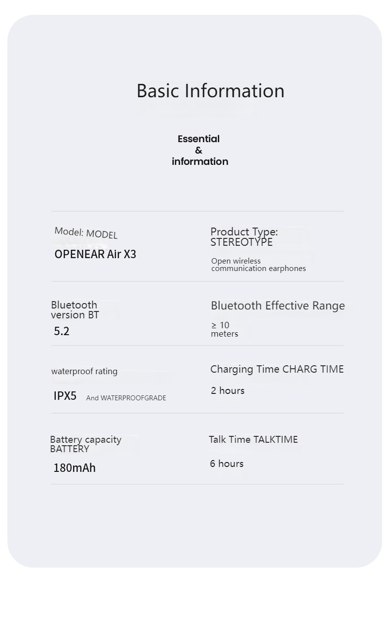 | Type | Open-ear Wireless Communication Headset |