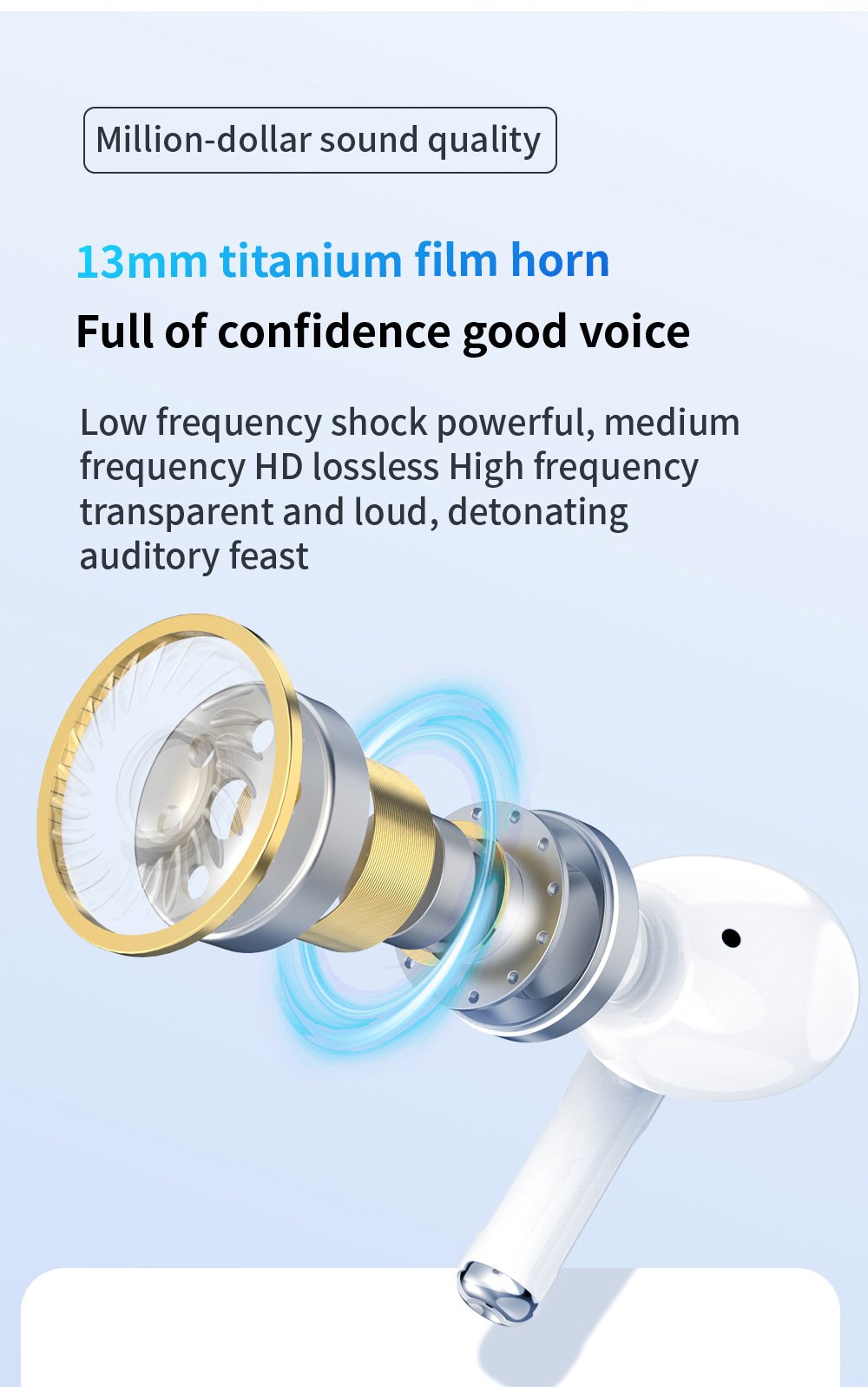 13mm large dynamic driver, powerful bass & HD clarity
