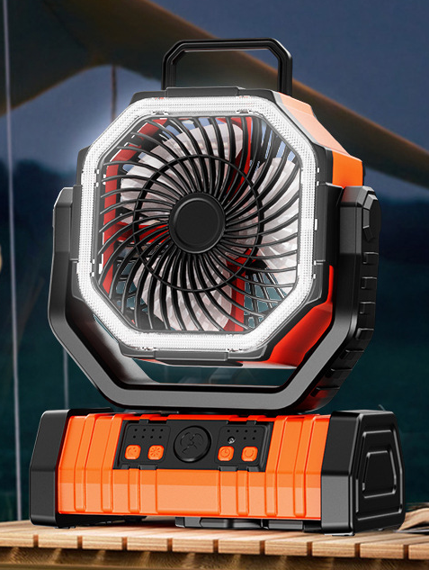 Additionally, the fan includes a remote control with 10-meter range for easy operation, and a high-power LED light with 3 brightness levels for outdoor lighting. Ideal for camping, fishing, and summer outdoor activities.